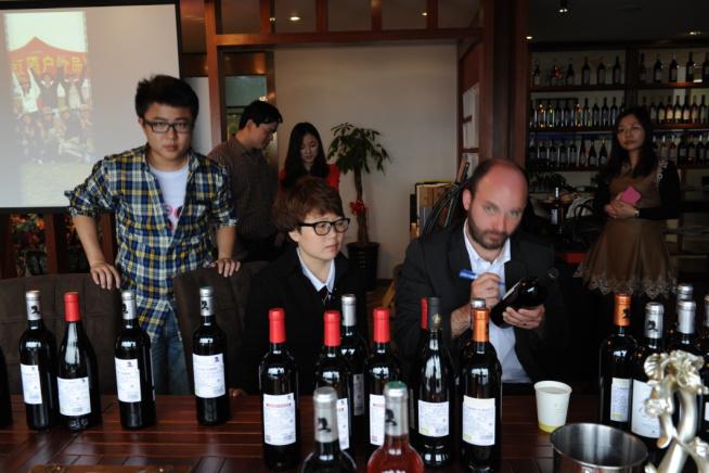 2013年4月3日下午,Anael PAYROU先生现场介绍圣女庄园的葡萄酒,并在会后于酒标上签名留念,作为纪念珍藏酒。